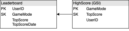 This is another example of where people might go and use a second table for rankings. Instead of doing that, we can make use of Global Secondary Indexes (GSI) to create a different way of accessing our data. Seen below is how we can accomplish this:
