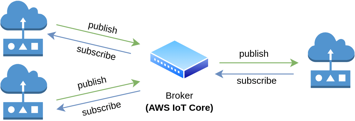 MQTT is what underpins all communication by devices that use AWS IoT (or all IoT platforms for that matter). The IoT service that AWS provides is just an abstraction on top of the general architecture shown below.