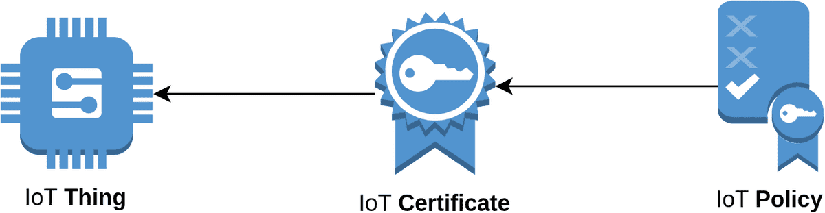 Policies are the way permissions are assigned to devices using AWS IoT certificates. A policy document is much like IAM policies in that it provides a set of permissions to do things with other AWS services