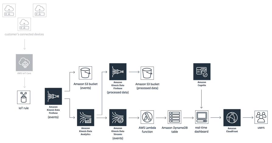 Although Amazon Kinesis isn't technically part of the AWS IoT service, it is heavily used by teams using AWS IoT due to its ability to ingest enormous streams of data and make sense of it.