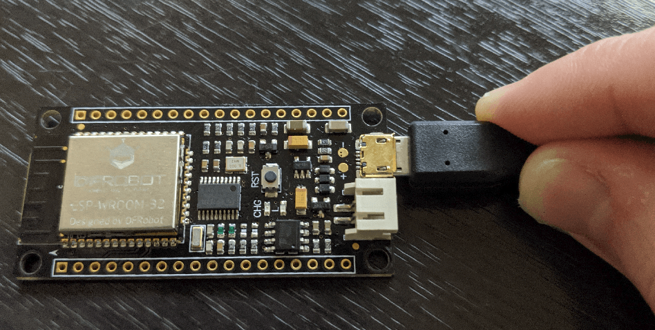 We're not ready to compile and deploy our project and it's as simple as one command. Plug in your ESP32 device to your computer over the USB cable it would have came with.