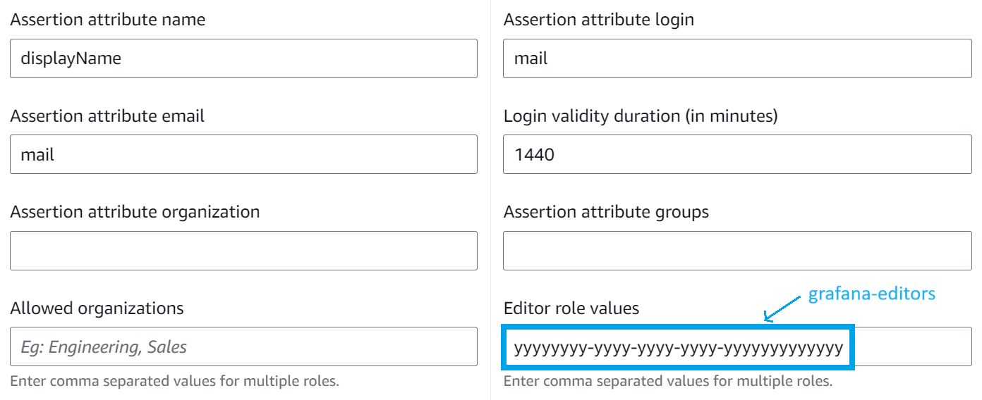 Finally, we need to modify the SAML configuration in Amazon Managed Grafana to tell it to look for the groups attribute we created in Entra ID.