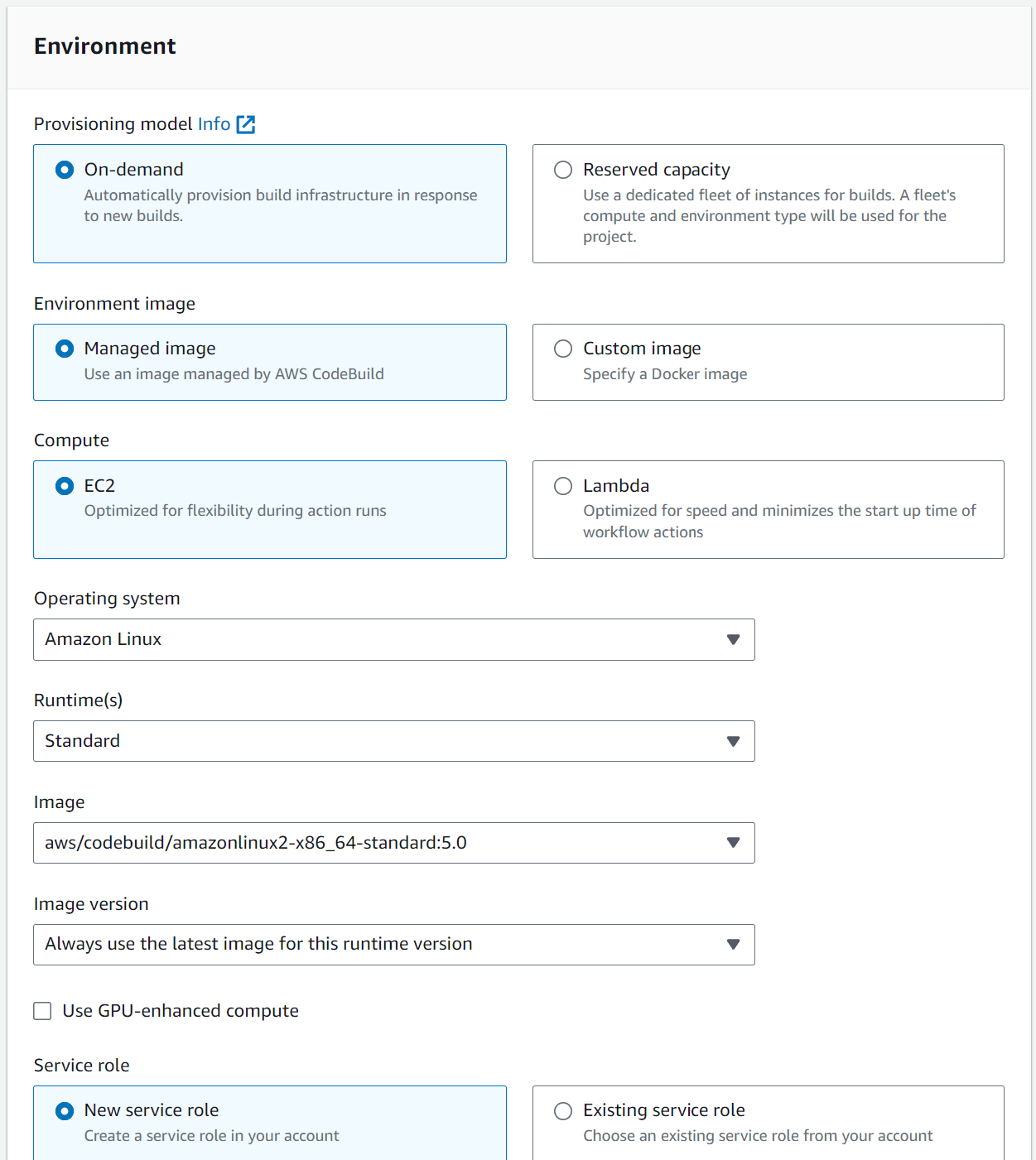 A full list of the available environments can be found in the CodeBuild GitHub Action Runner documentation.
